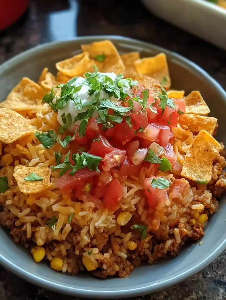 The Taco Rice Bowl with Doritos is not only quick but also incredibly versatile. You can easily adapt it based on your preferences or what you have on hand. Whether it’s a busy weeknight dinner or casual gathering, this recipe promises satisfaction and joy for everyone at the table. Try it out today!
