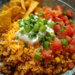 The Taco Rice Bowl with Doritos Recipe is an exciting and quick meal that caters to everyone’s tastes. Perfect for busy weeknights or casual gatherings, this dish combines seasoned taco meat, fluffy rice, and the crunchy goodness of Doritos. With its bold flavors and customizable toppings, it’s sure to become a family favorite.